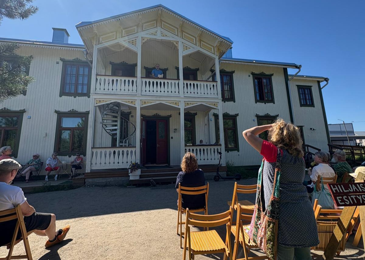 Runokaraoke klo 14-15. Runot kajautetaan Ykspihlajan Matkustajakodin parvekkeelta.