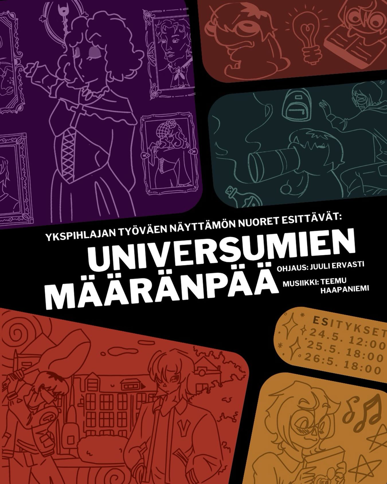 Ykspihlajan työväen näyttämön nuoret tuovat tänä vuonna teatteria nuorilta nuorille. Toukokuussa lavalla nähdään suurimmaksi osaksi nuorten itse kirjoittama fantasia teos, joka sai nimekseen Universumien määränpää. Näytelmä tarjoaa katsojalle kaikkea kummallisista merirosvoista ihka eläviin Manga-hahmoihin.
